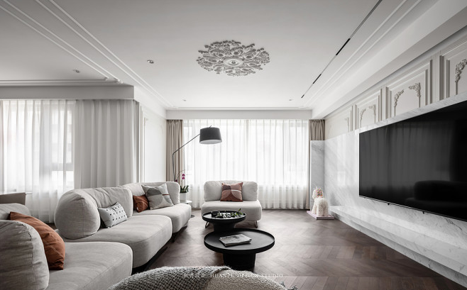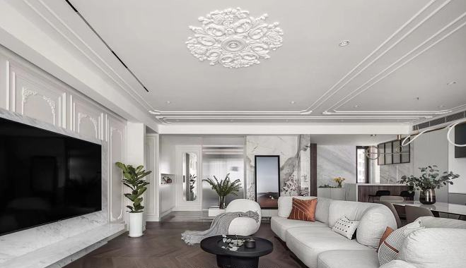 实际上最新流行的法式风格和我们传统意义上的法式风格还是有很大区别的,现代的法式更简约,现代家具让小户型也能轻松驾驭法式风格而不厚重,注重个别元素细节突出法式的浪漫氛围,更注重材质的精致度,加入现代的奢石、金属等元素让整体呈现豪华感。