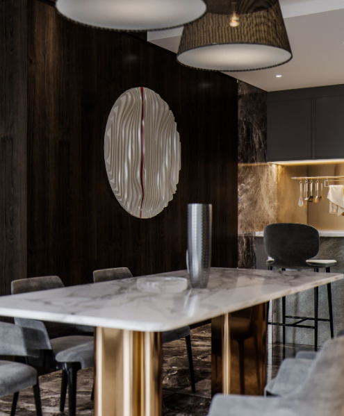 在“轻奢风格”的空间里,看似简洁朴素的外表之下却常常折射出一种隐藏著的贵族气质,这种气质大多数通过家具软装,壁纸,纺织品,皮毛等软装元素来体现。